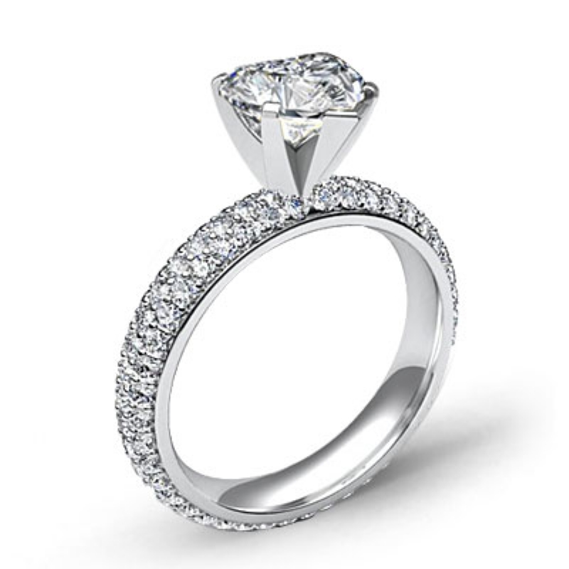 1.08Ct Round Pave Setting Diamond Women Engagement Ring Semi Mount Platinum 950.