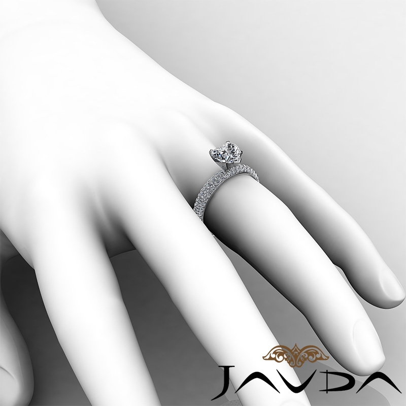 3 Row Micro Pave Set Shank style Engagement Ring, center is Heart shape Diamond Report by GIA, J Color & SI2 clarity, Made in Platinum 950 (1.92 ct. tw.)