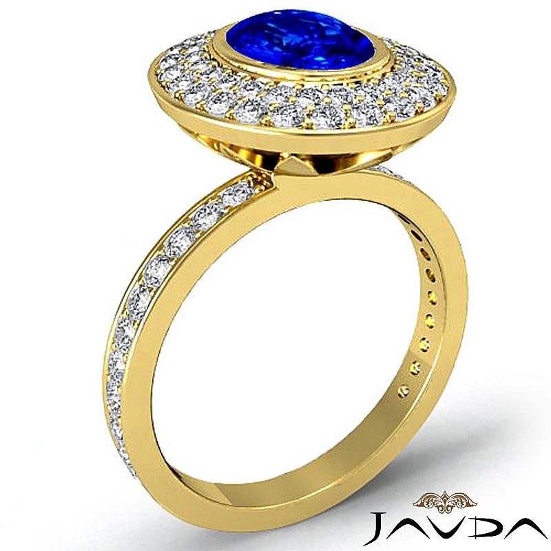 2 Row Halo Pave Bezel Set style Engagement Ring, center is Oval shape D Block Tanzanite Report by , Color & clarity, Made in 14k Yellow Gold (1.75 ct. tw.)