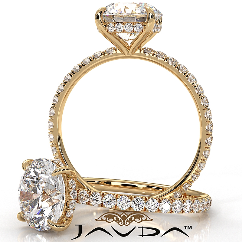 U Pave Hidden Halo Semi Mount Diamond Engagement Ring 14k Yellow Gold 0.48Ct.