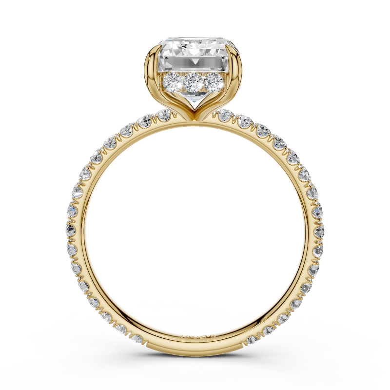 U Pave Hidden Halo Semi Mount Diamond Engagement Ring 14k Yellow Gold 0.48Ct.