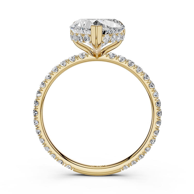 U Pave Hidden Halo Semi Mount Diamond Engagement Ring 18k Yellow Gold 0.48Ct - javda.com