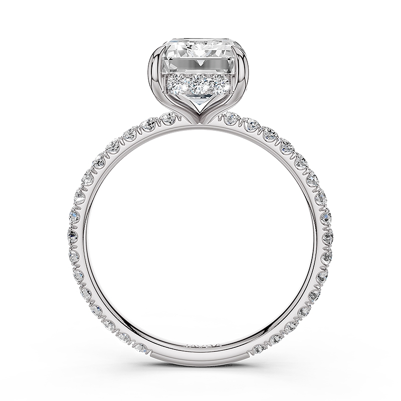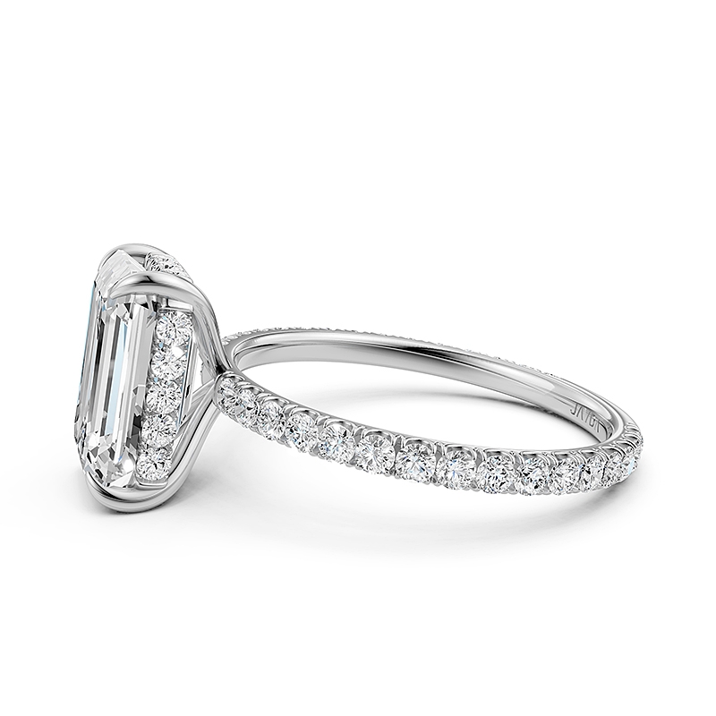 U Pave Hidden Halo Semi Mount Diamond Engagement Ring Platinum 950 0.48Ct.