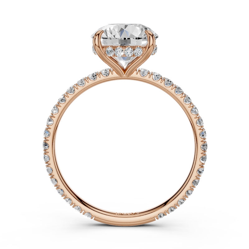 U Pave Hidden Halo Semi Mount Diamond Engagement Ring 14k Rose Gold 0.48Ct.