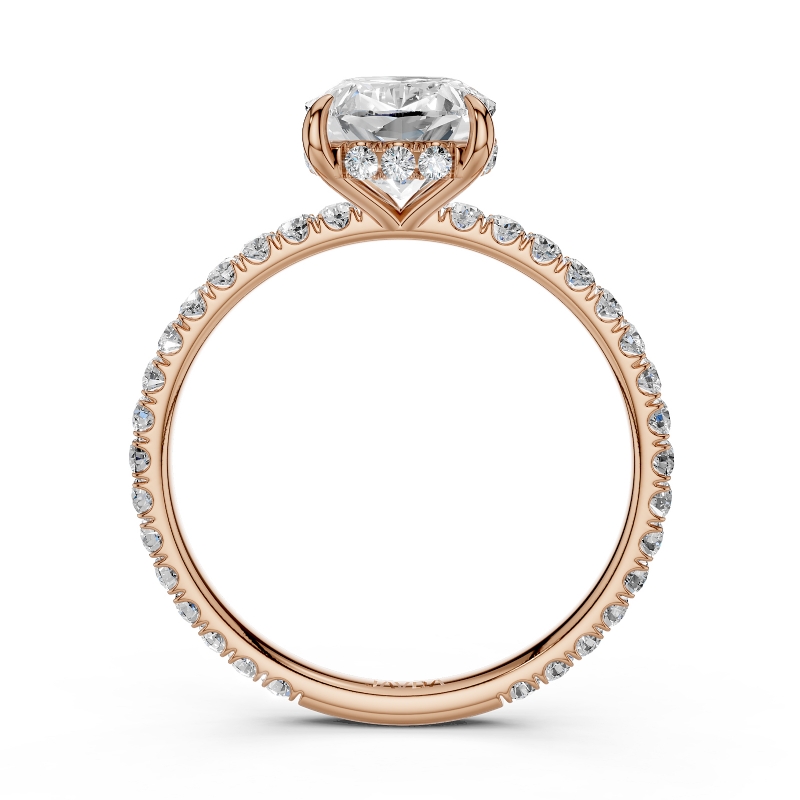 U Pave Hidden Halo Semi Mount Diamond Engagement Ring 14k Rose Gold 0.48Ct.