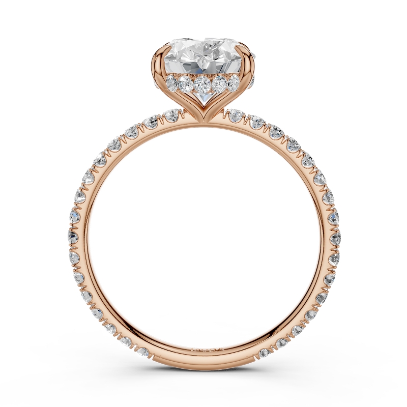 U Pave Hidden Halo Semi Mount Diamond Engagement Ring 14k Rose Gold 0.48Ct.