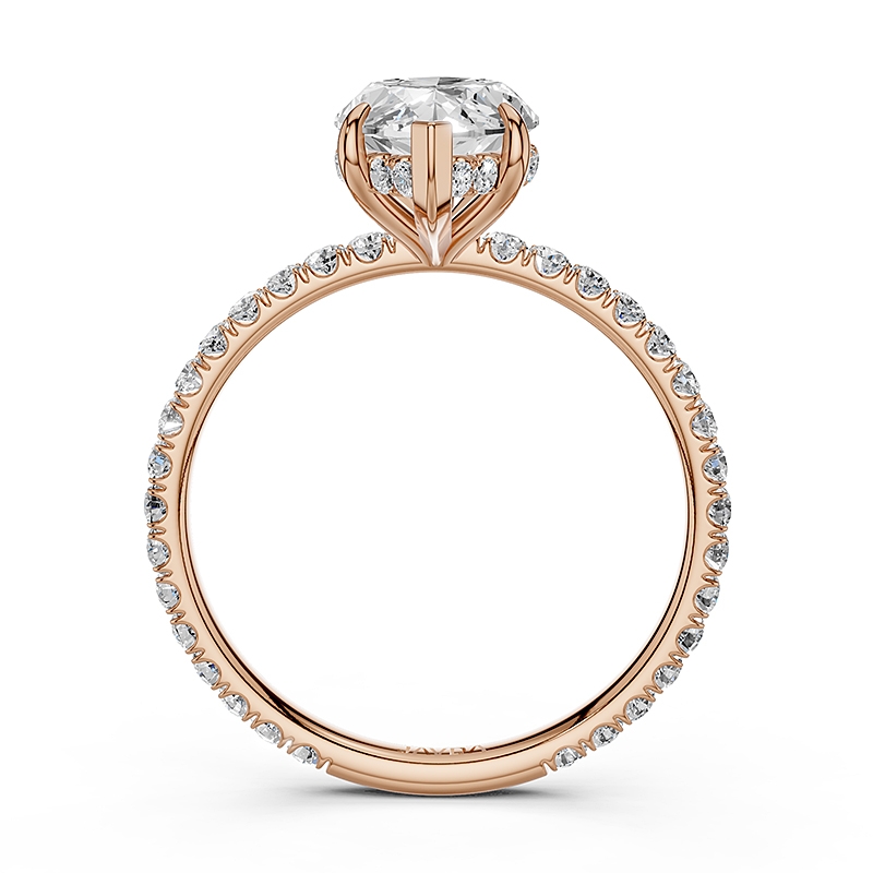 U Pave Hidden Halo Semi Mount Diamond Engagement Ring 14k Rose Gold 0.48Ct.
