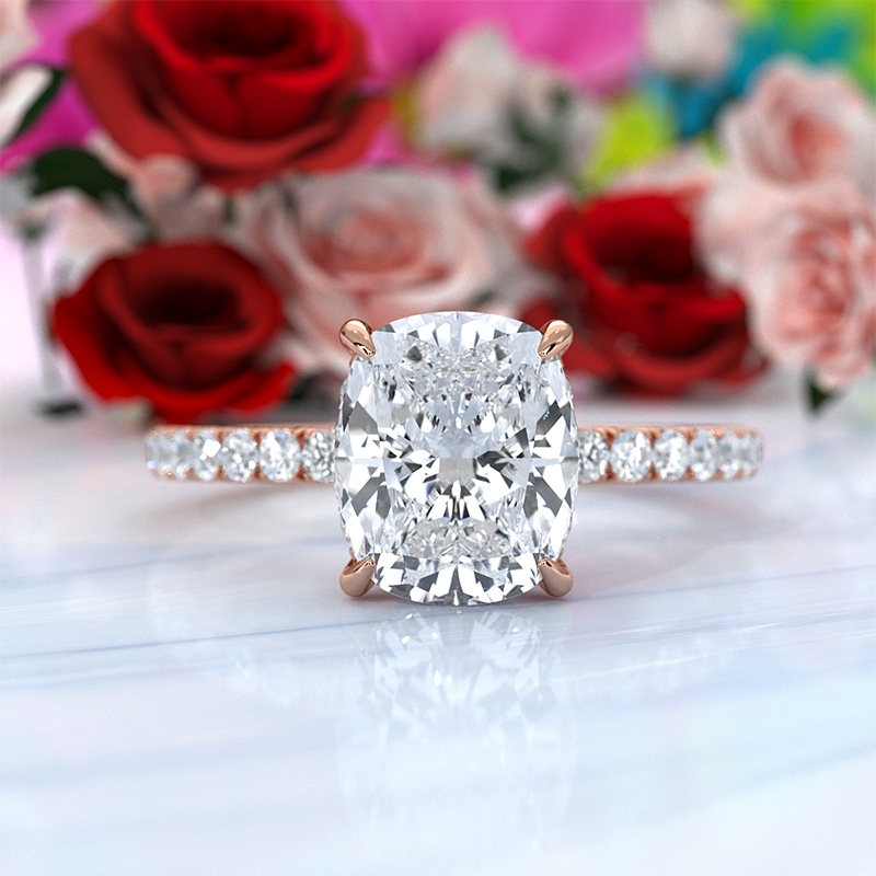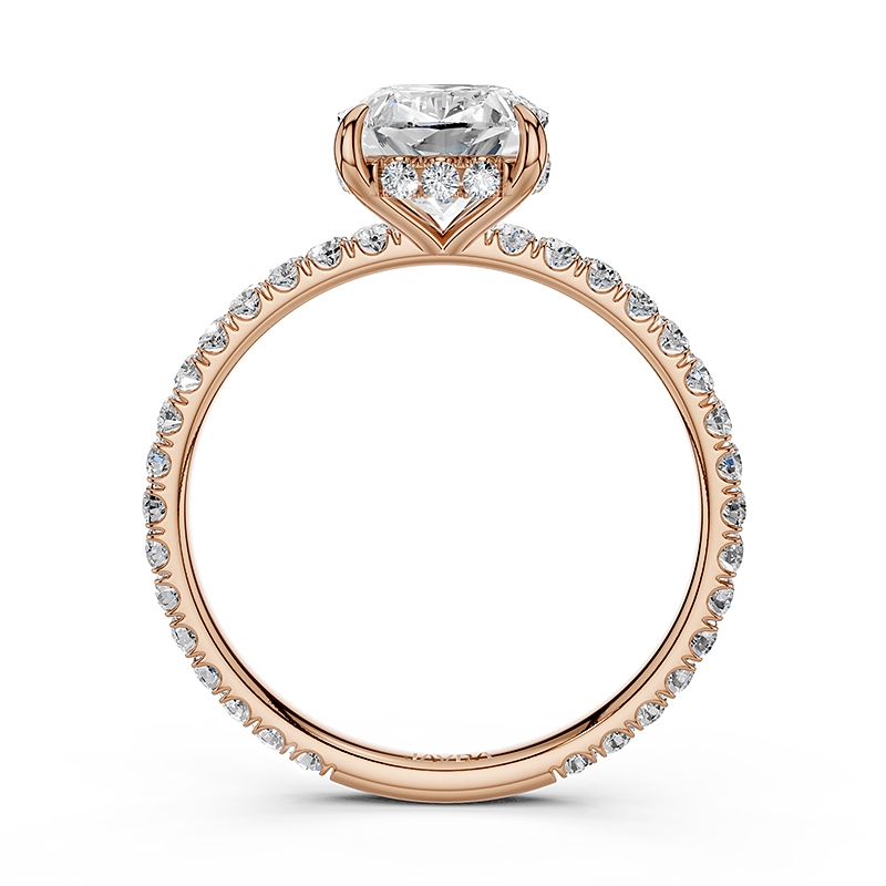 U Pave Hidden Halo Semi Mount Diamond Engagement Ring 18k Rose Gold 0.48Ct - javda.com
