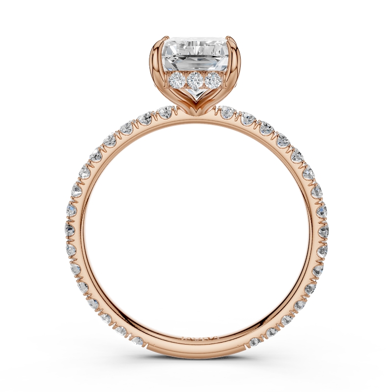 U Pave Hidden Halo Semi Mount Diamond Engagement Ring 18k Rose Gold 0.48Ct.