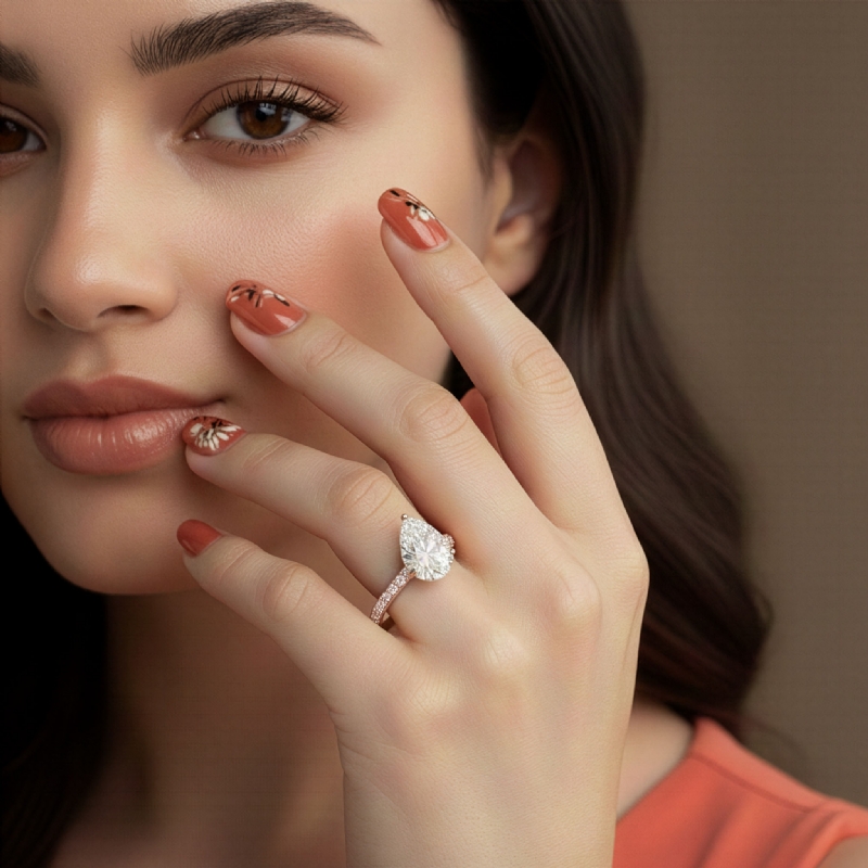style Engagement Ring, center is Pear shape Diamond Report by IGI, D Color & VS1 clarity, Made in 18k Rose Gold (1.48 ct. tw.)