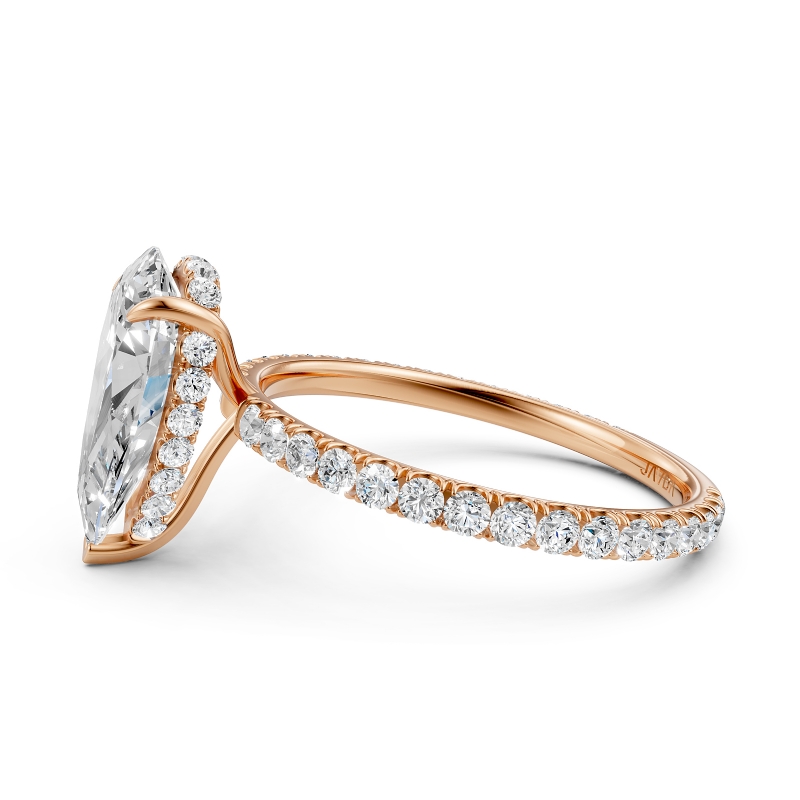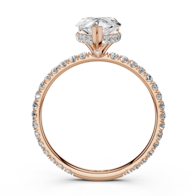 U Pave Hidden Halo Semi Mount Diamond Engagement Ring 18k Rose Gold 0.48Ct.