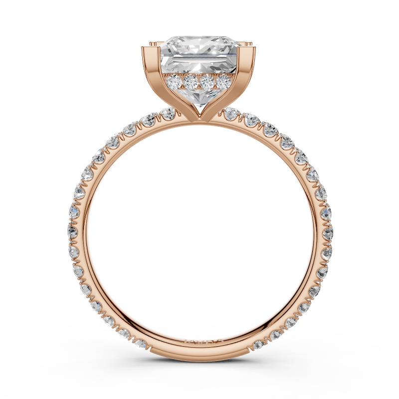 U Pave Hidden Halo Semi Mount Diamond Engagement Ring 18k Rose Gold 0.48Ct.