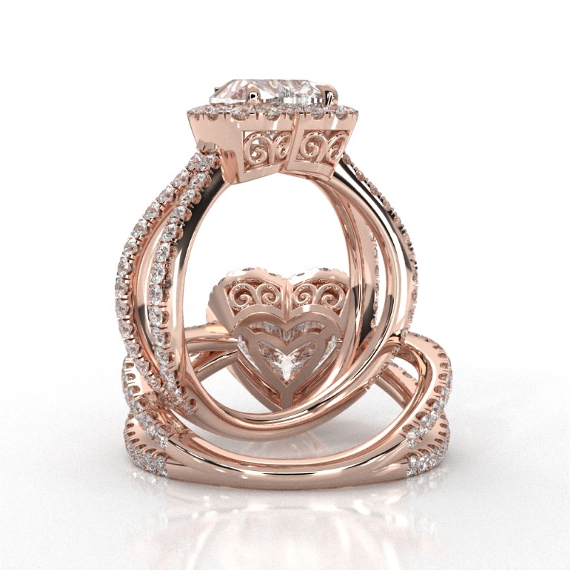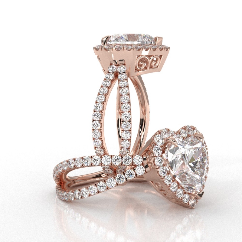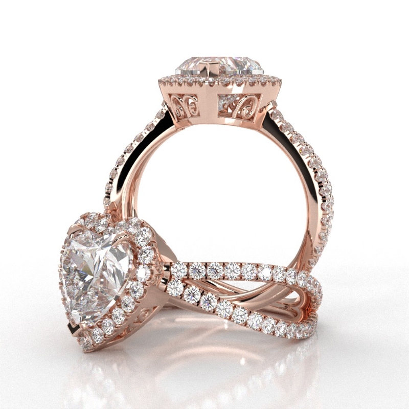 style Engagement Ring, center is Heart shape Diamond Report by GIA, I Color & SI1 clarity, Made in 14k Rose Gold (1.59 ct. tw.)