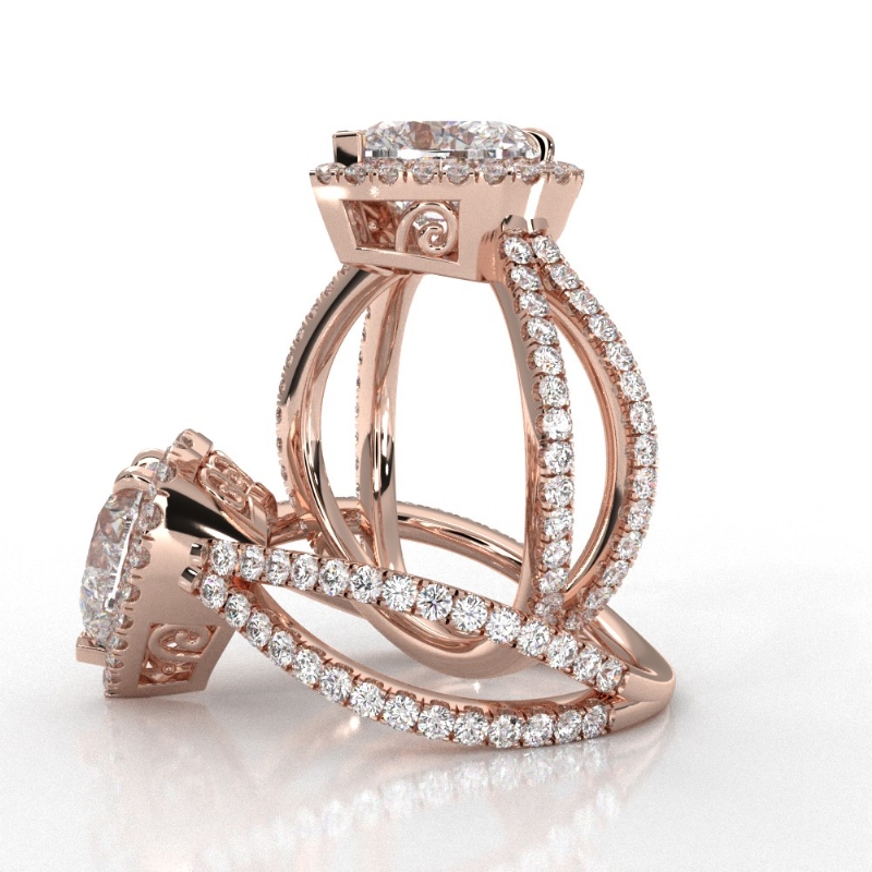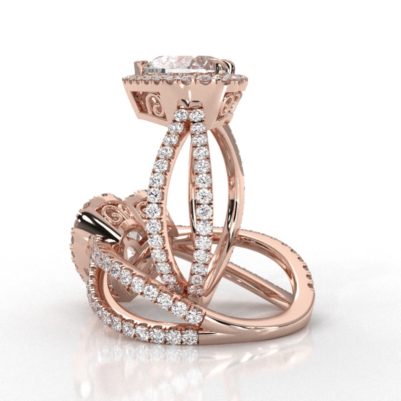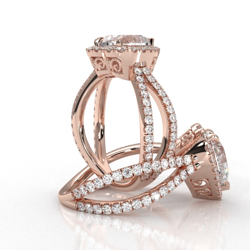Diamond Engagement SemiMount Ring Split Shank 14k Rose Gold Halo Setting 0.75Ct.