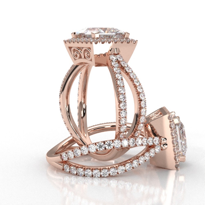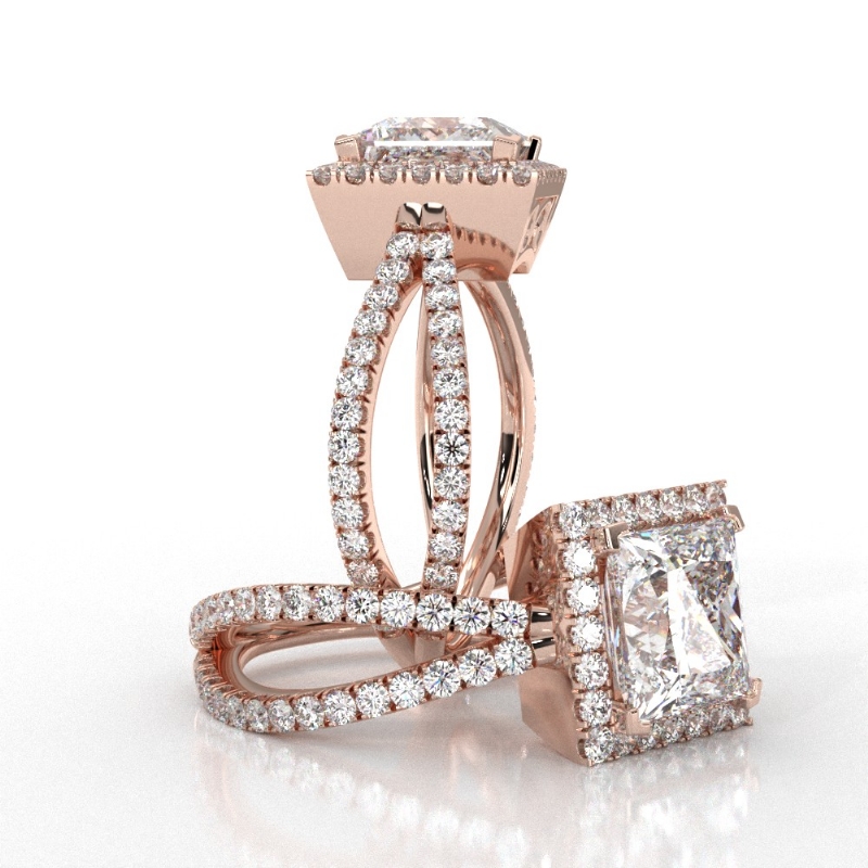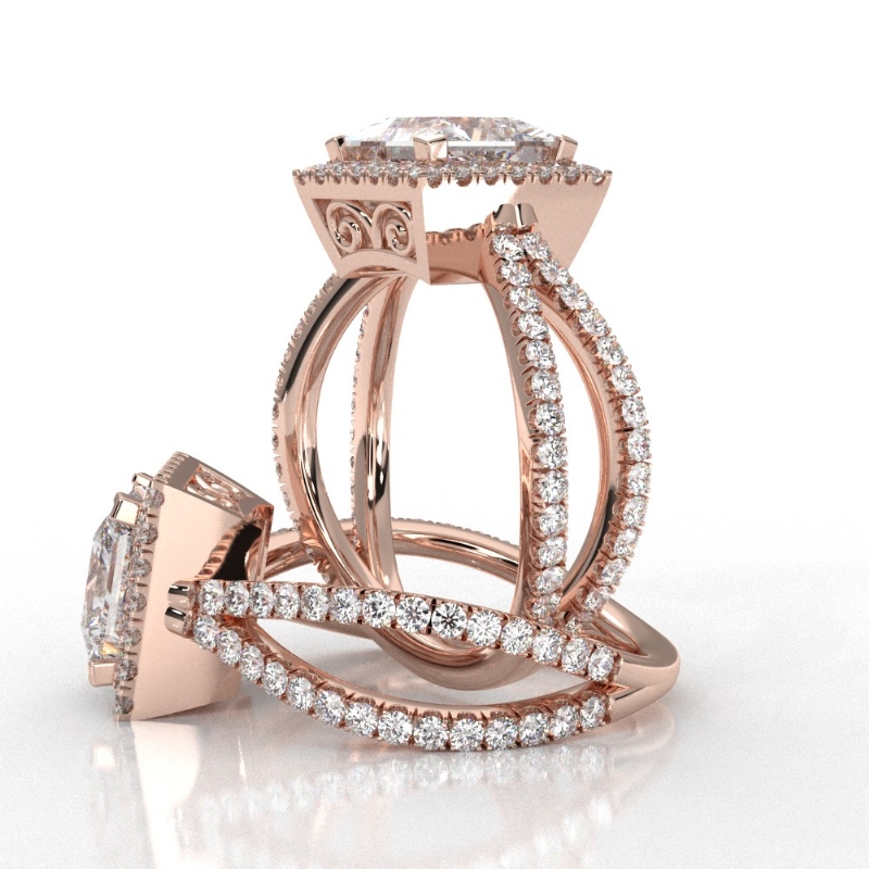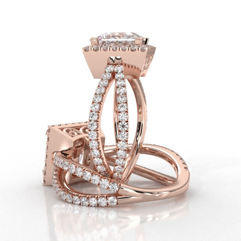 Diamond Engagement SemiMount Ring Split Shank 14k Rose Gold Halo Setting 0.75Ct - javda.com