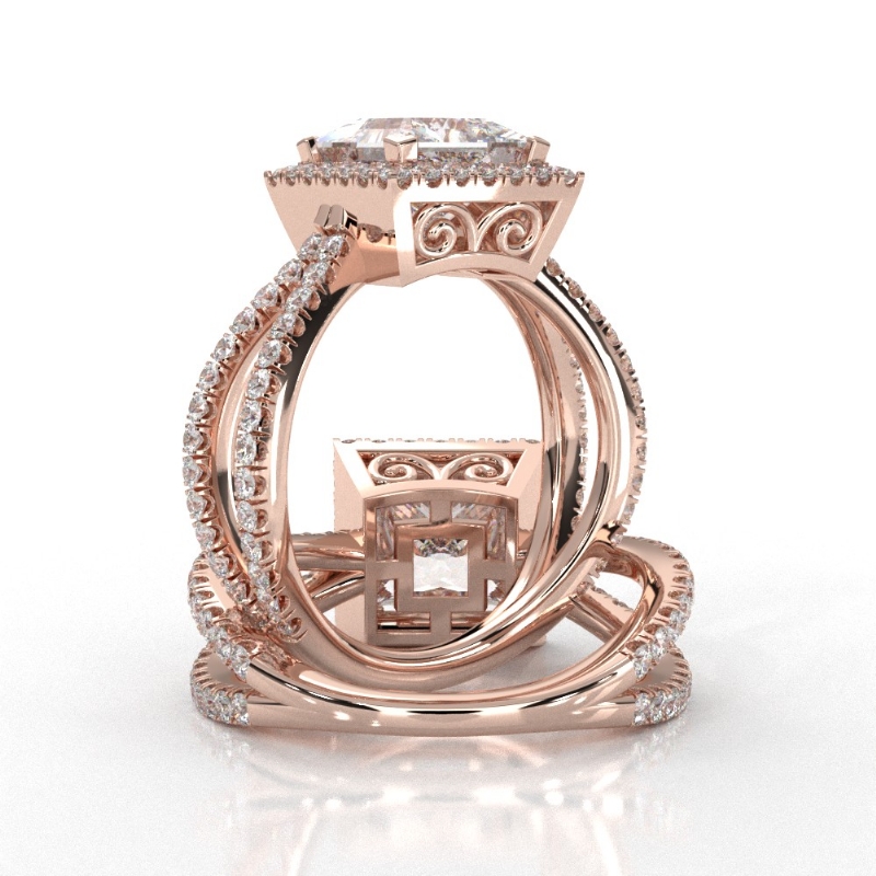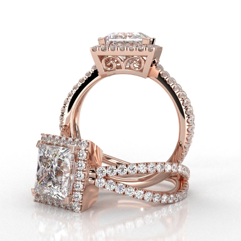 style Engagement Ring, center is Princess shape Diamond Report by GIA, I Color & VVS1 clarity, Made in 14k Rose Gold (1.75 ct. tw.)
