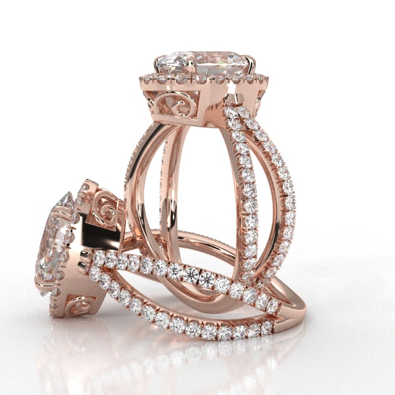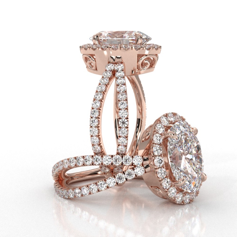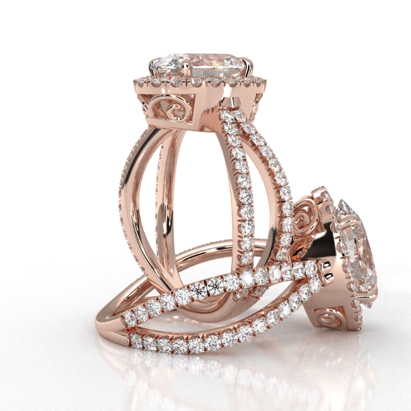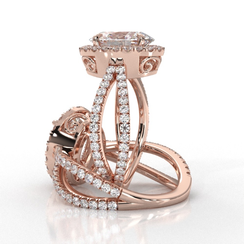 Diamond Engagement SemiMount Ring Split Shank 14k Rose Gold Halo Setting 0.75Ct.