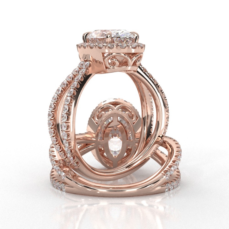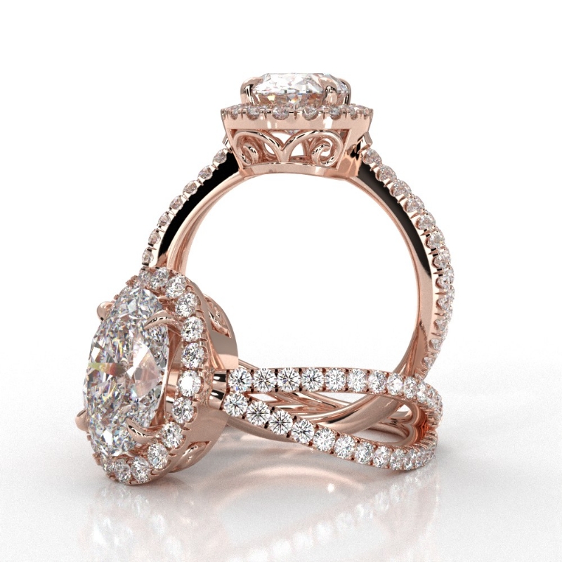 style Engagement Ring, center is Oval shape Diamond Report by IGI, F Color & VS1 clarity, Made in 14k Rose Gold (1.75 ct. tw.)