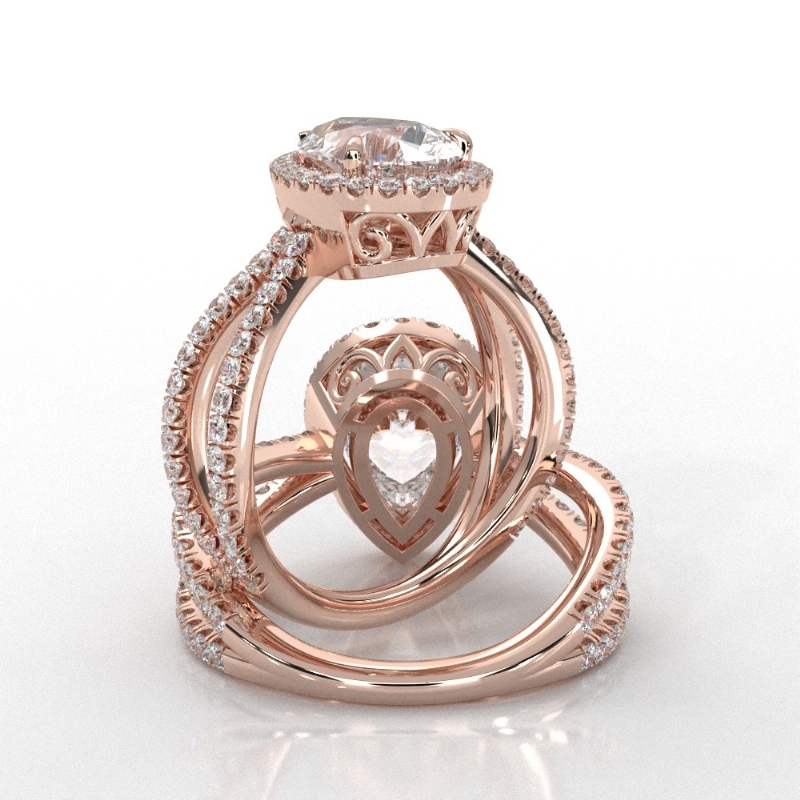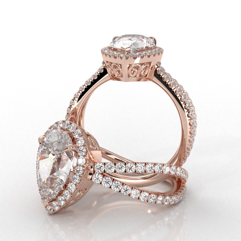 style Engagement Ring, center is Pear shape Diamond Report by IGI, E Color & VS1 clarity, Made in 18k Rose Gold (1.97 ct. tw.)