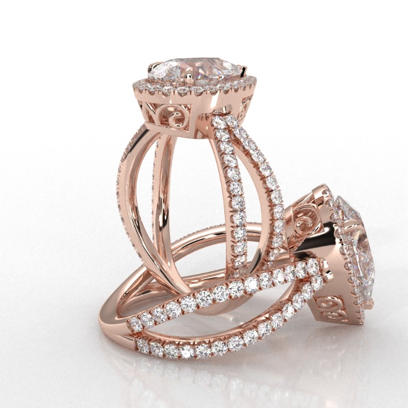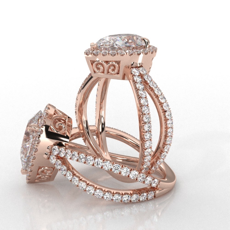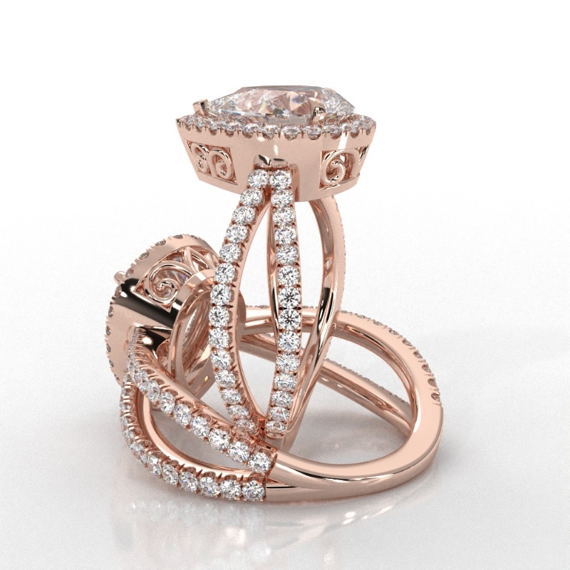 Diamond Engagement SemiMount Ring Split Shank 18k Rose Gold Halo Setting 0.75Ct.