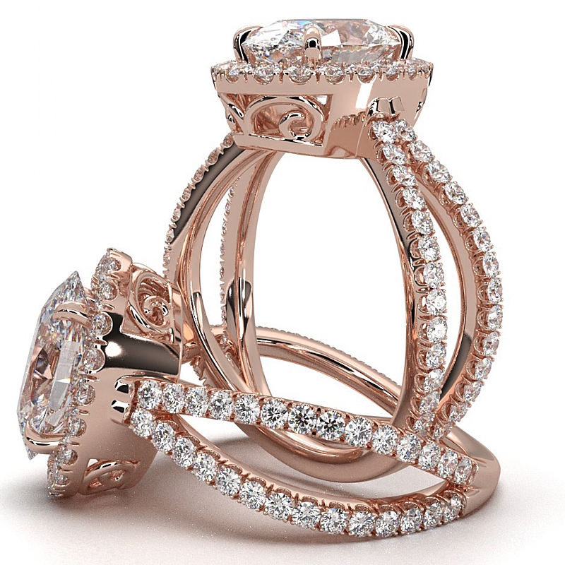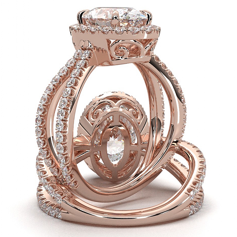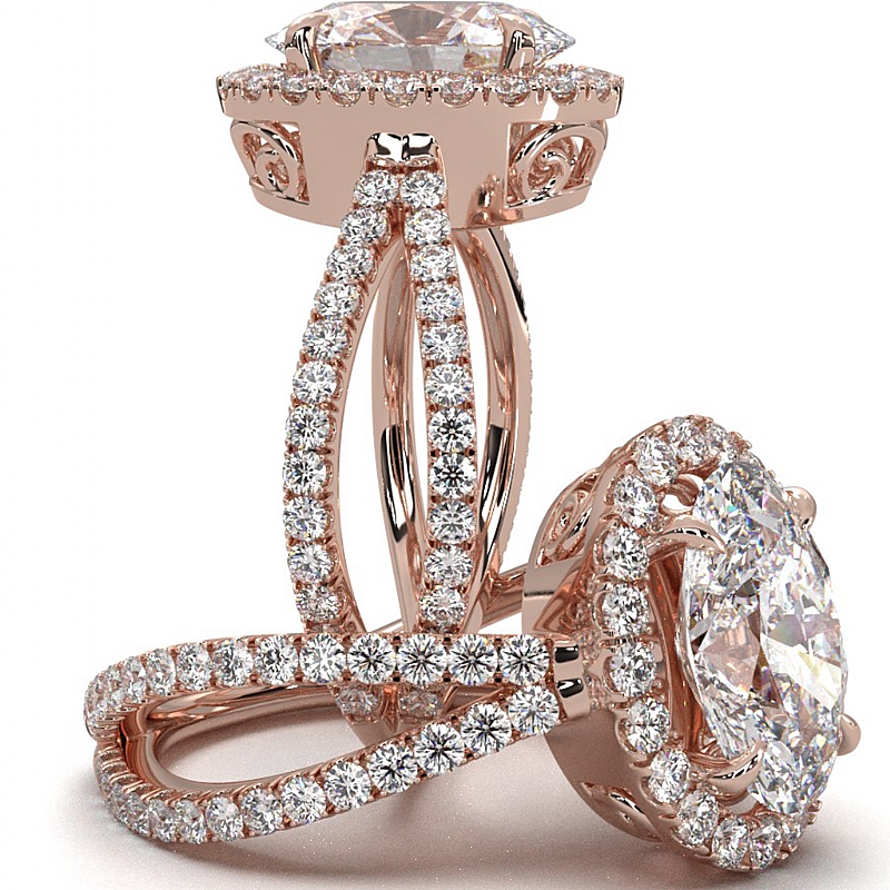 Popular Split Shank Halo style Engagement Ring, center is Oval shape Diamond Report by IGI, F Color & VS1 clarity, Made in 14k Rose Gold (1.75 ct. tw.)