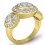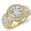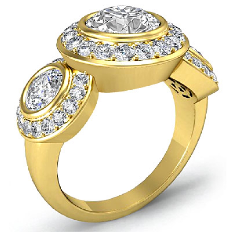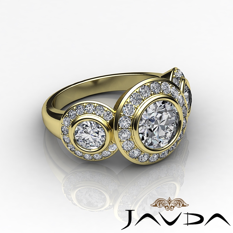 3 Stone Halo Pave Bezel Set style Engagement Ring, center is Round shape Diamond Report by IGI, H Color & VS1 clarity, Made in 18k Yellow Gold (2.55 ct. tw.)