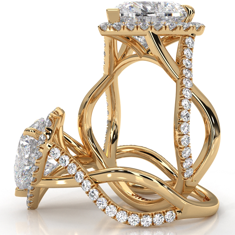 Twisted Halo XOXO Style Round Diamond Engagement Ring in 14k Yellow Gold 0.7Ct.