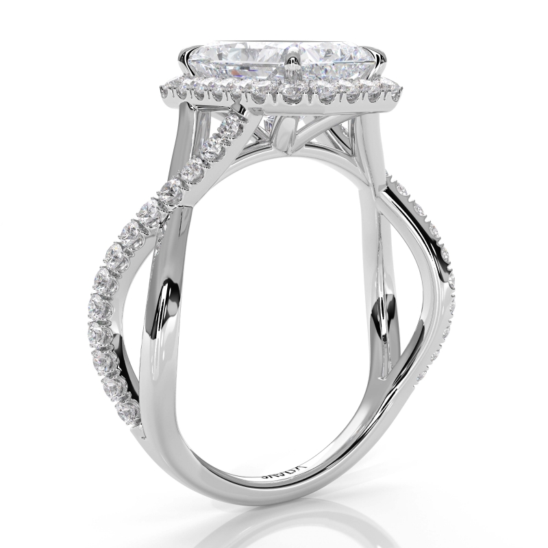 Twisted Halo XOXO Style Round Diamond Engagement Ring in Platinum 950 0.7Ct.