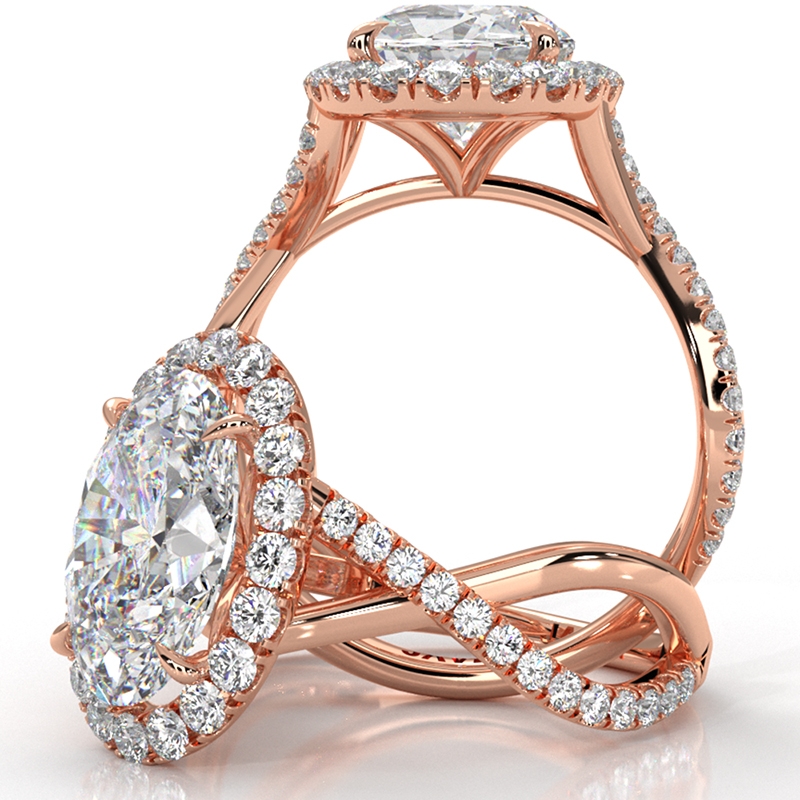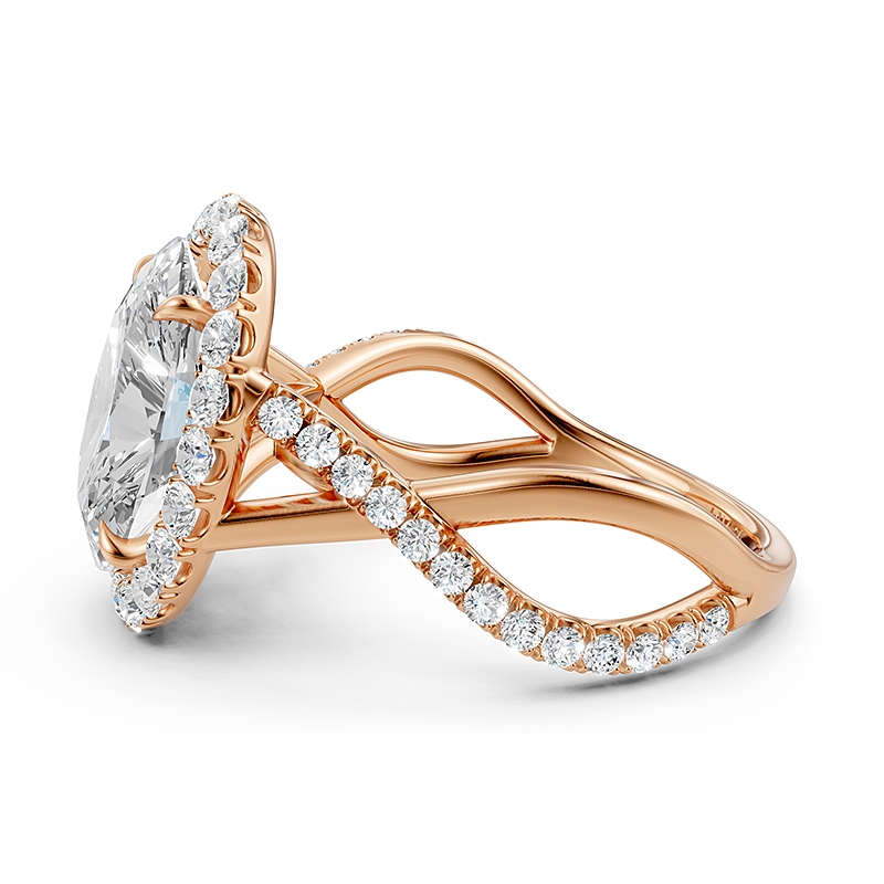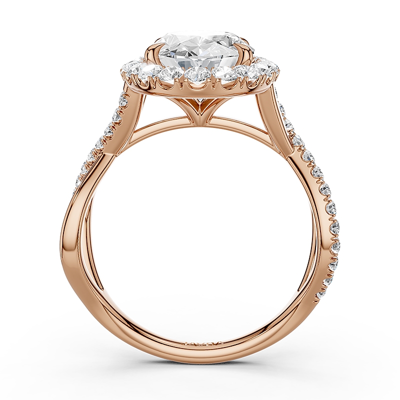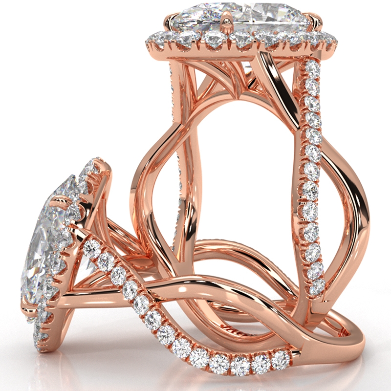 Twisted Halo XOXO Style Round Diamond Engagement Ring in 14k Rose Gold 0.7Ct.