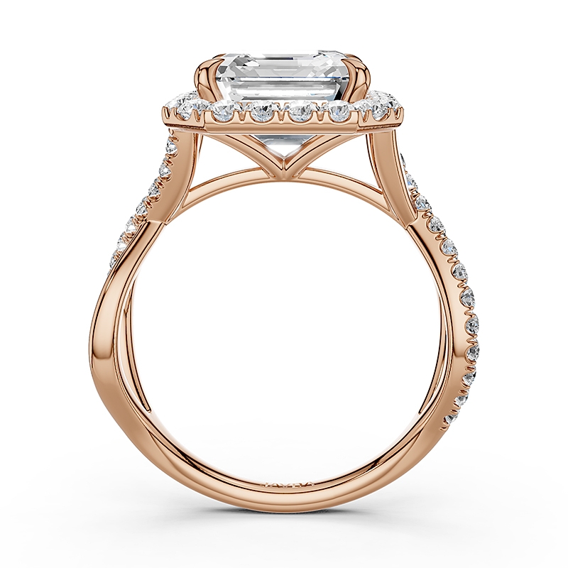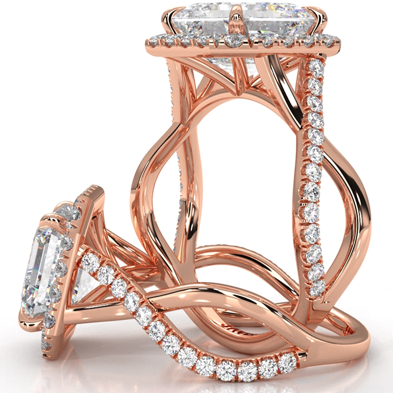 Twisted Halo XOXO Style Round Diamond Engagement Ring in 18k Rose Gold 0.7Ct.