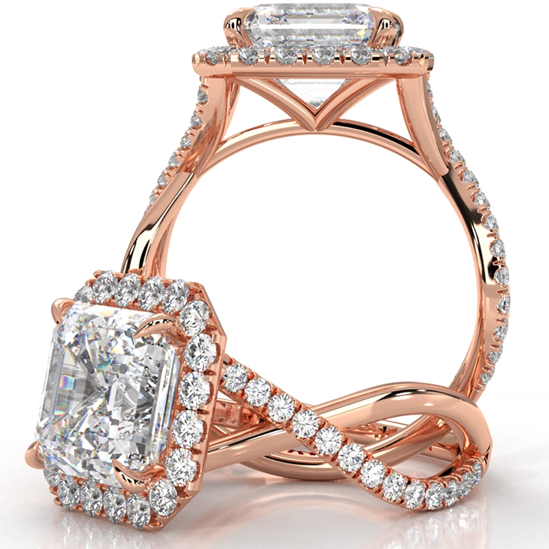 style Engagement Ring, center is Asscher shape Diamond Report by IGI, D Color & VS1 clarity, Made in 18k Rose Gold (1.78 ct. tw.)