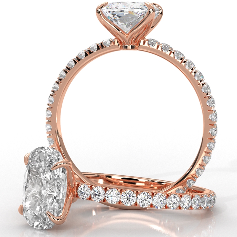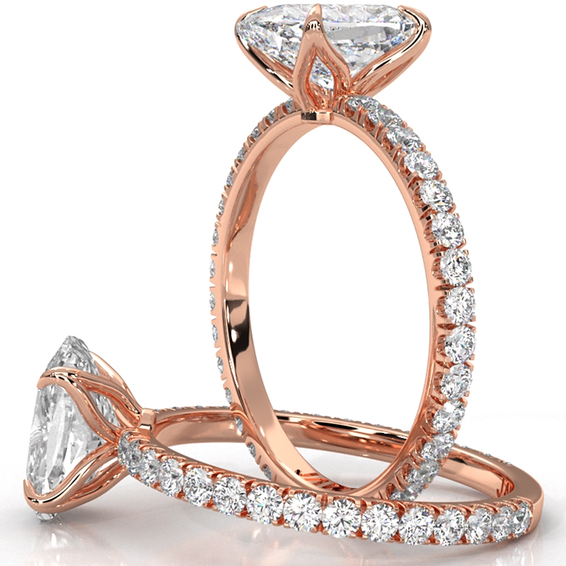 style Engagement Ring, center is Cushion shape Diamond Report by IGI, E Color & VS1 clarity, Made in 14k Rose Gold (1.66 ct. tw.)