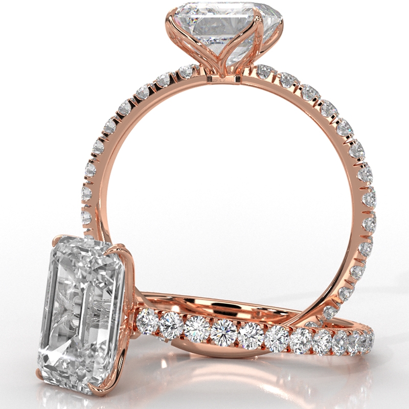 style Engagement Ring, center is Emerald shape Diamond Report by IGI, D Color & VS1 clarity, Made in 14k Rose Gold (1.5 ct. tw.)