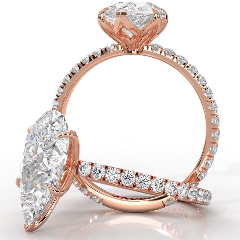 style Engagement Ring, center is Pear shape Diamond Report by IGI, D Color & VS1 clarity, Made in 14k Rose Gold (1.5 ct. tw.)