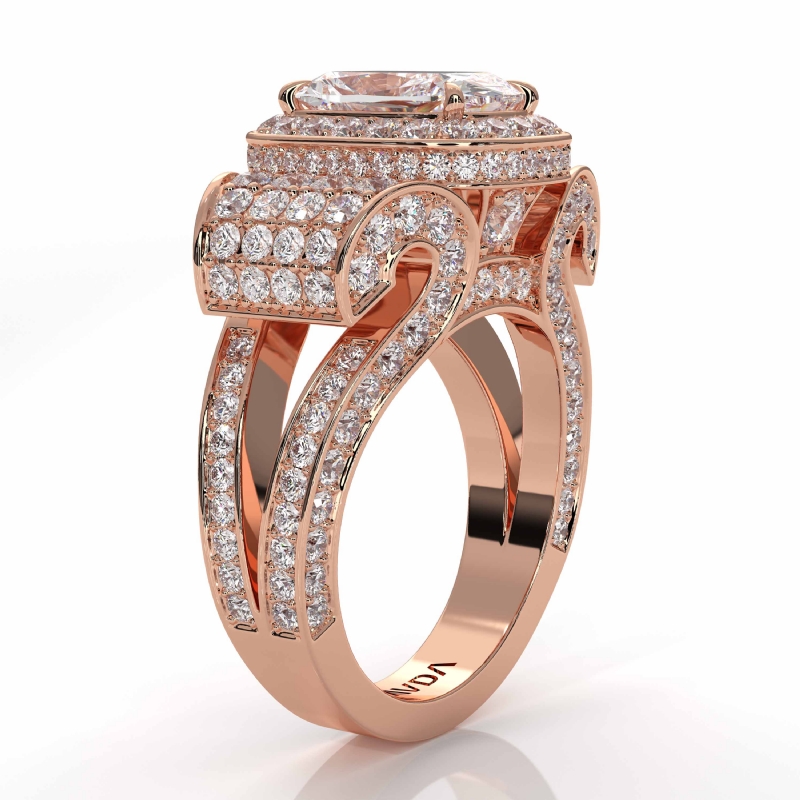 style Engagement Ring, center is Cushion shape Diamond Report by IGI, E Color & VS1 clarity, Made in 14k Rose Gold (4.02 ct. tw.)