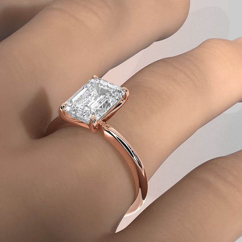 style Engagement Ring, center is Emerald shape Diamond Report by IGI, F Color & VS1 clarity, Made in 18k Rose Gold (5.5 ct. tw.)