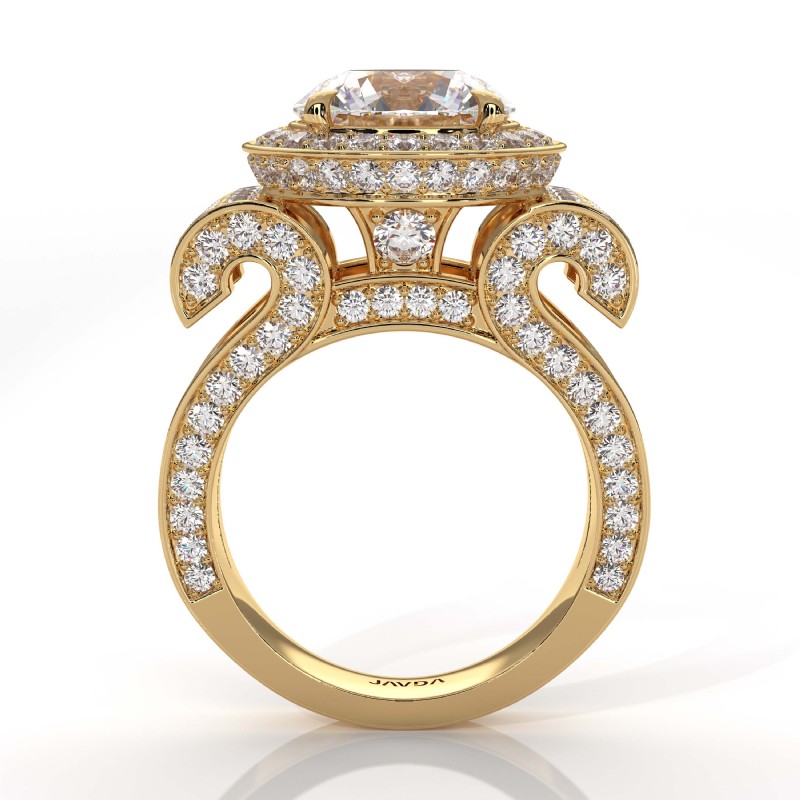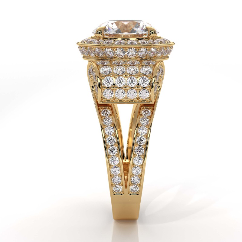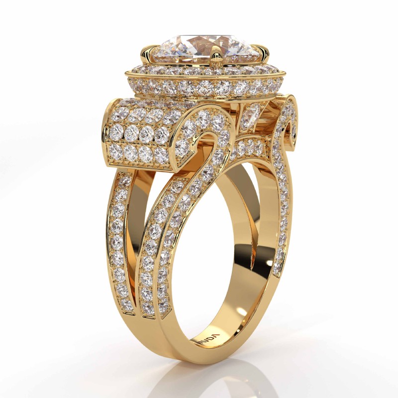 Round Diamond Engagement Ring Antique & Vintage Halo Pave Semi Mount 14k Yellow Gold 2.7Ct.