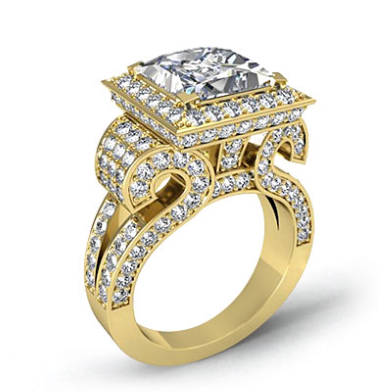 style Engagement Ring, center is Princess shape Diamond Report by IGI, E Color & VS1 clarity, Made in 14k Yellow Gold (3.72 ct. tw.)