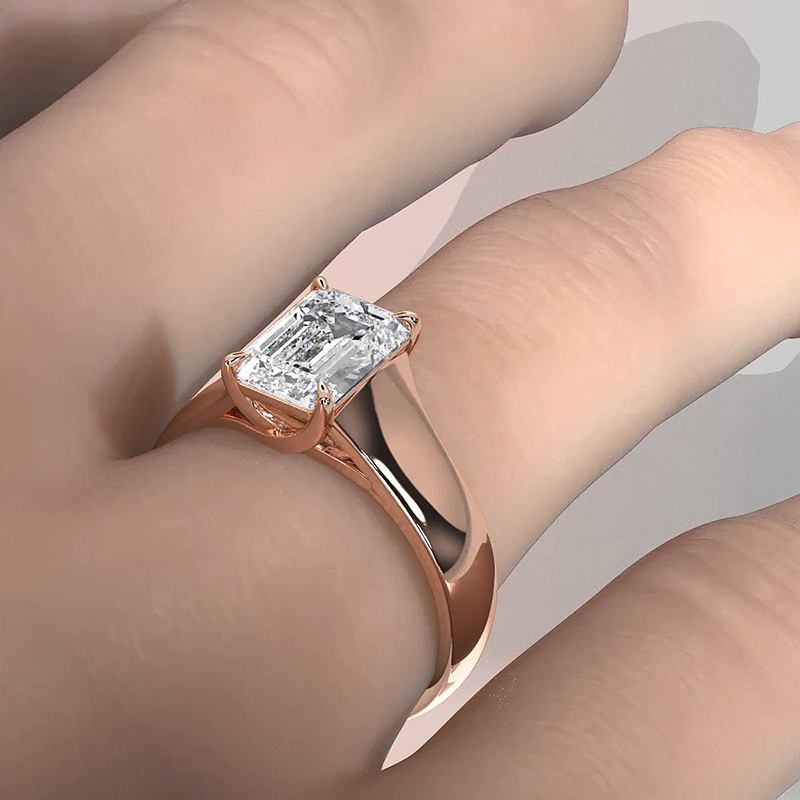 style Engagement Ring, center is Emerald shape Diamond Report by IGI, D Color & VS1 clarity, Made in 14k Rose Gold (1 ct. tw.)