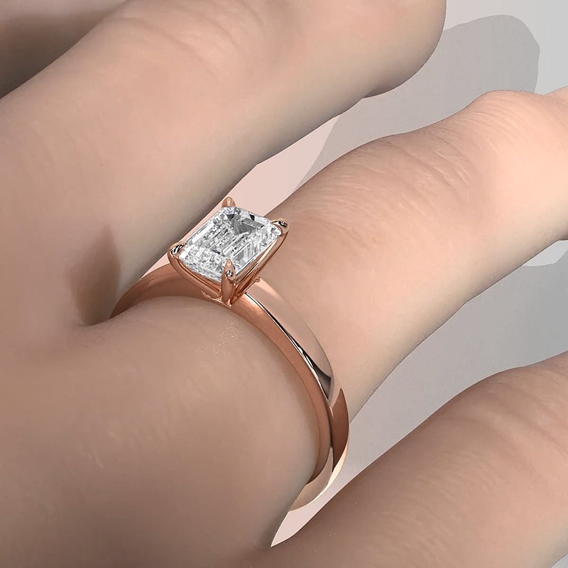 style Engagement Ring, center is Emerald shape Diamond Report by GIA, D Color & SI1 clarity, Made in 14k Rose Gold (0.62 ct. tw.)