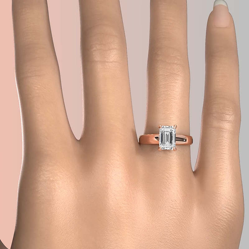 emerald diamond engagement ring report by gia, e color & vvs2 clarity, 18k rose gold (0.53 ct. tw.)