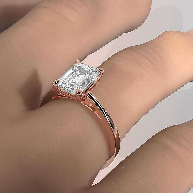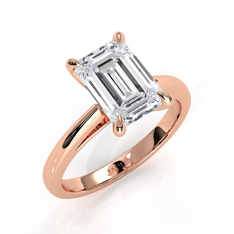 emerald diamond engagement ring report by gia, e color & vvs2 clarity, 18k rose gold (0.53 ct. tw.)