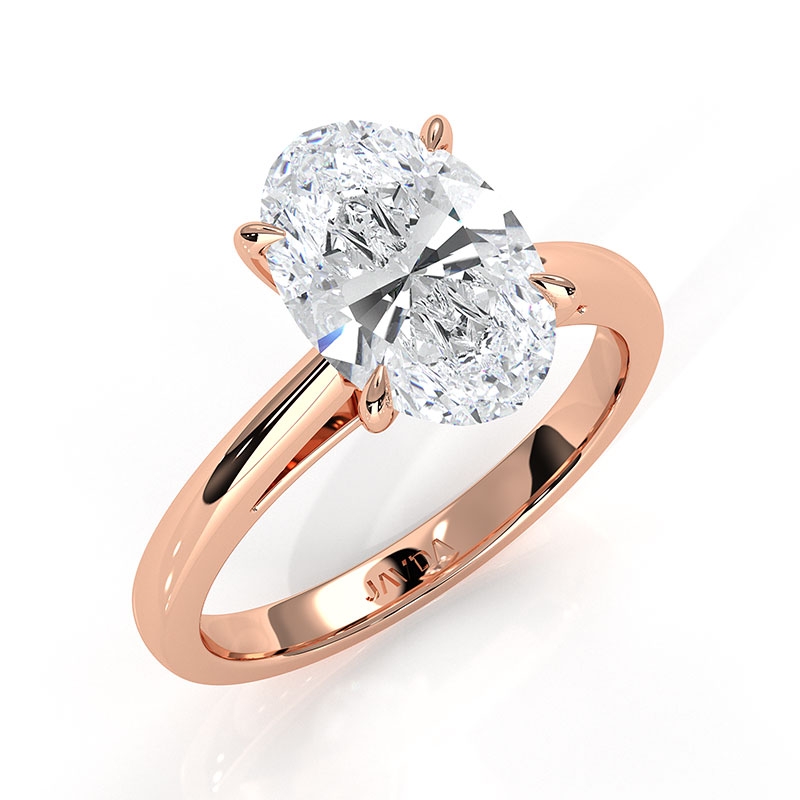 style Engagement Ring, center is Oval shape Diamond Report by GIA, J Color & VS2 clarity, Made in 18k Rose Gold (0.6 ct. tw.)