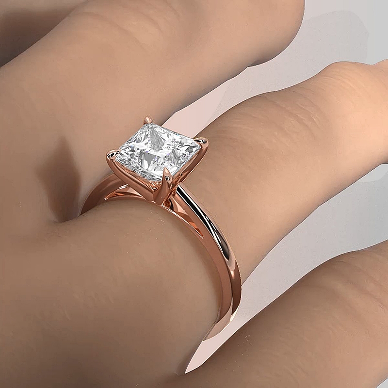 princess diamond engagement ring report by gia, f color & vs2 clarity, 18k rose gold (0.75 ct. tw.)