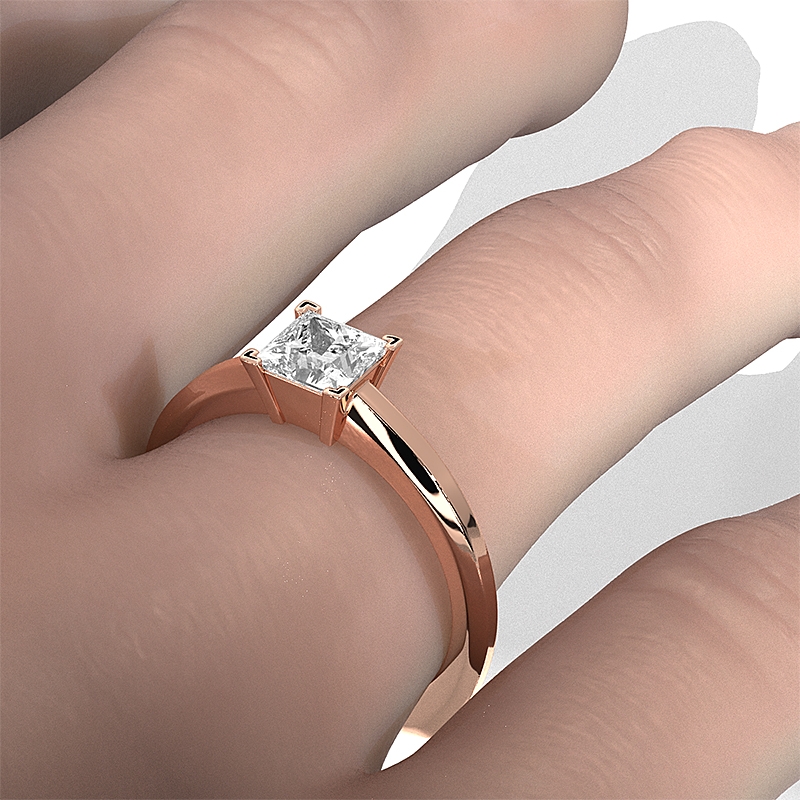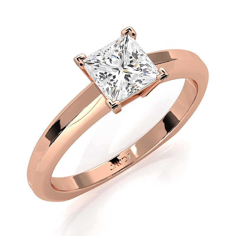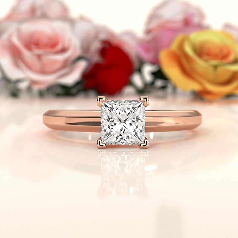 Solitaire Diamond Engagement Ring 14k Rose Gold Princess Semi Mount.