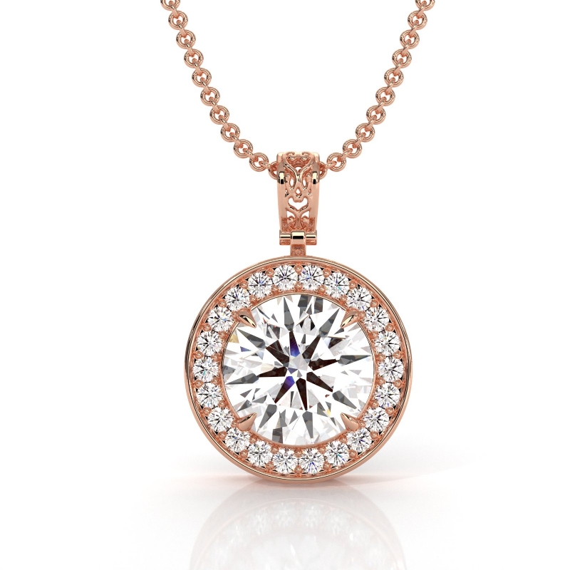 style Engagement Pendant, center is Round shape Diamond Report by GIA, F Color & VS2 clarity, Made in 14k Rose Gold (1.1 ct. tw.)