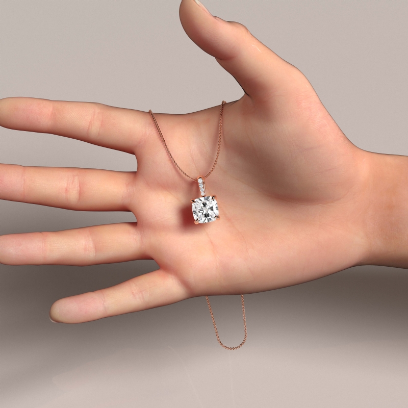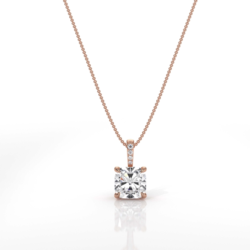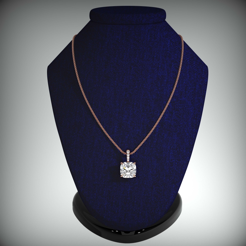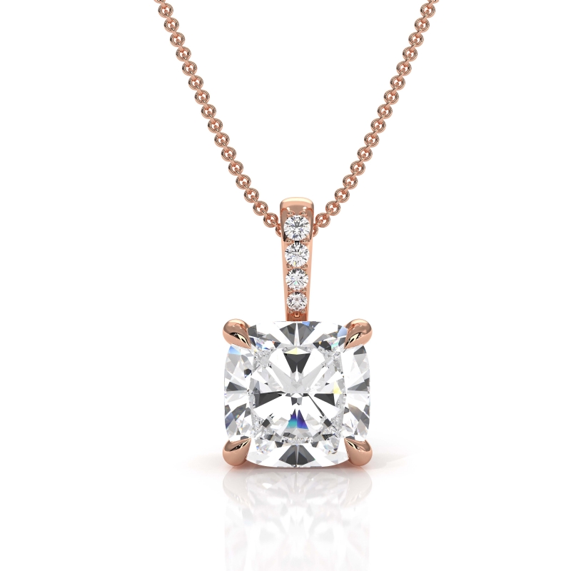 style Engagement Pendant, center is Cushion shape Diamond Report by IGI, D Color & VS1 clarity, Made in 14k Rose Gold (5.03 ct. tw.)