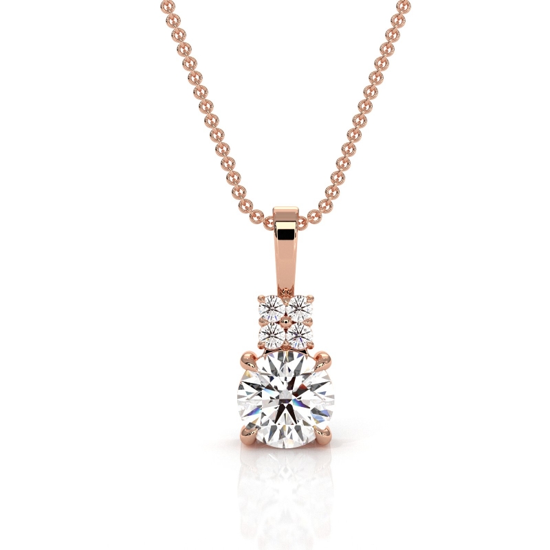 style Engagement Pendant, center is Round shape Diamond Report by GIA, E Color & VS1 clarity, Made in 14k Rose Gold (0.54 ct. tw.)