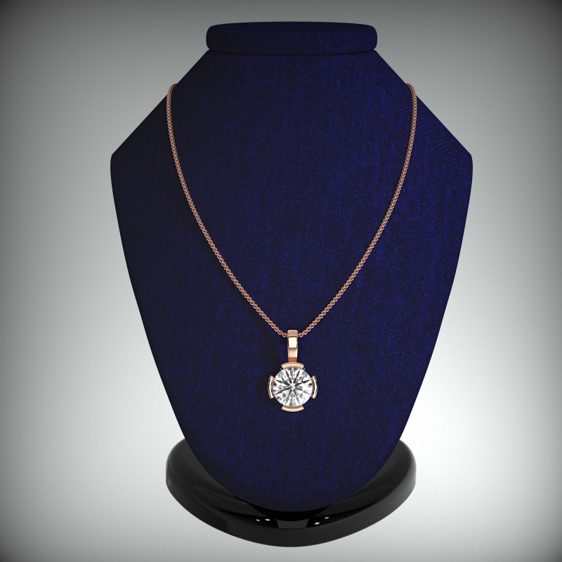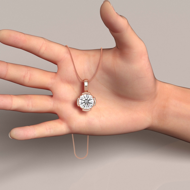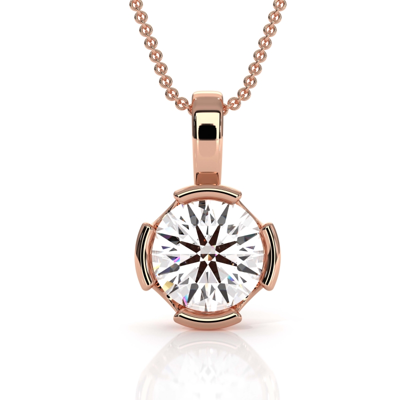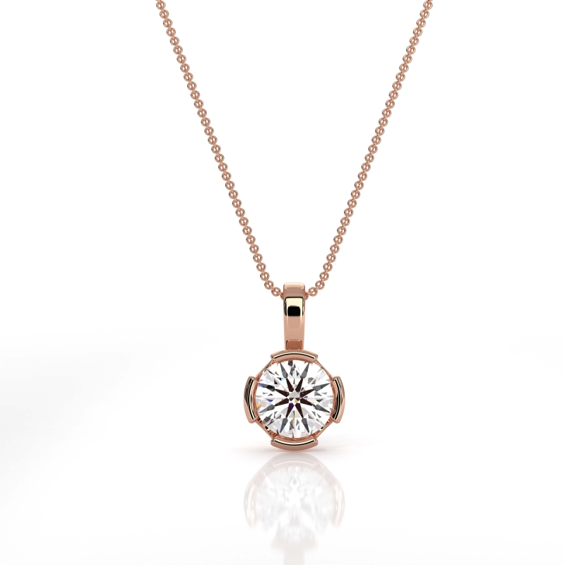Bezel Set Round Cut Solitaire Semi Mount Bail Pendant in 14k Rose Gold.