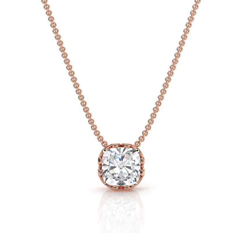 cushion diamond engagement pendant report by gia, h color & vs1 clarity, 18k rose gold (0.57 ct. tw.)